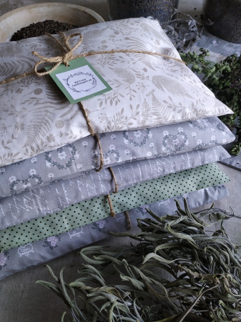 Zatím jsem našila dva druhy polštářků. V první kombinaci jsem k pohankovým slupkám přimíchala levanduli a meduňku.