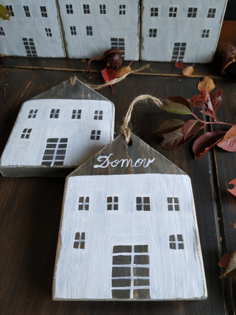 Domečky dělám též na pověšení na zeď nebo na dveře... Možné i s nápisem na přání, např. Domov, Vítejte, nebo se jménem rodiny. Krásně vypadají třeba i na věnci na dveřích.